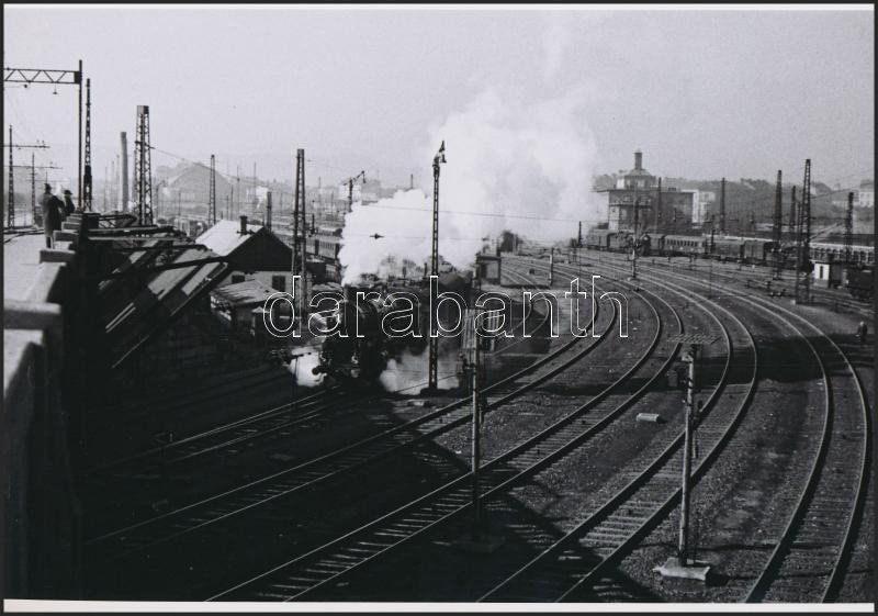 cca 1938 Budapest, Nyugati pályaudvar üzemi területe a Ferdinánd hídról fényképezve, korabeli negatívról készült mai nagyítás, 18x25 cm