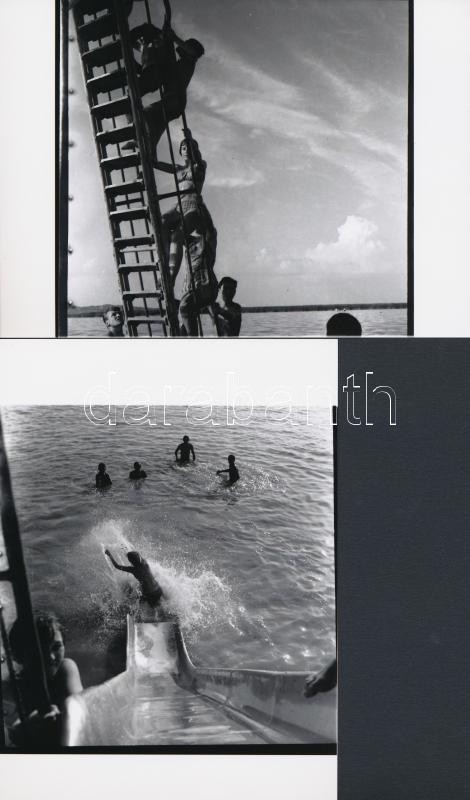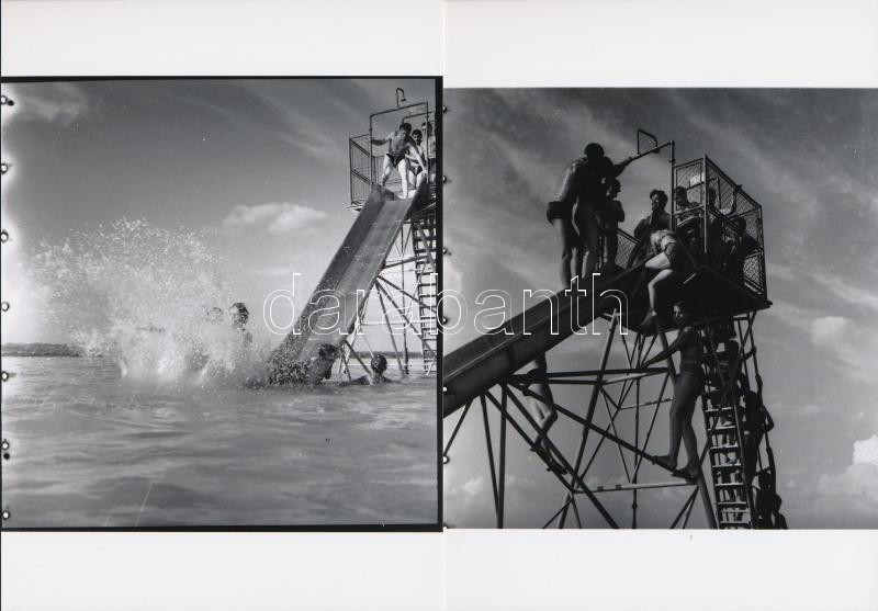 cca 1960 Balatoni csúszda, egy családi archívumban talált 4 db korabeli negatív modern nagyítása, 18x13 cm