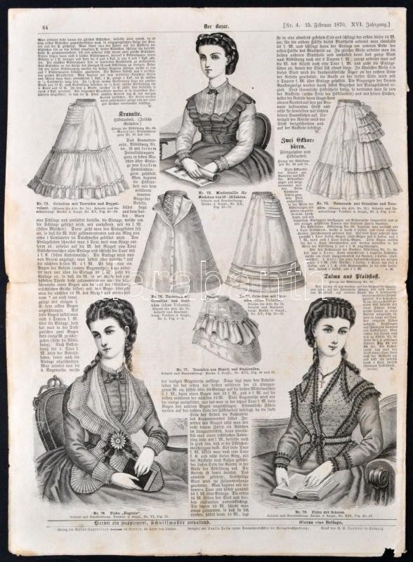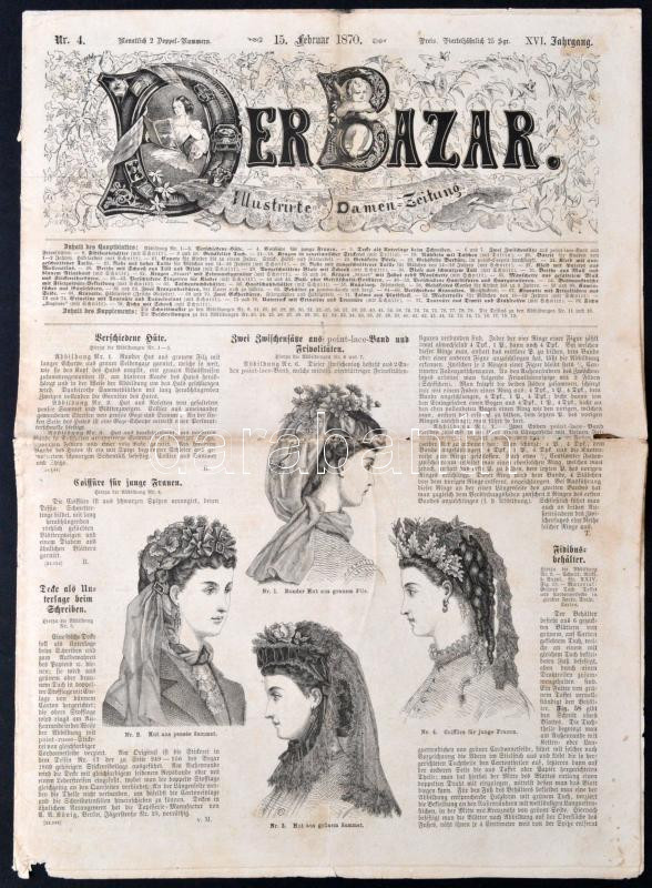 1870 A Der Bazar c. női lap nagyméretű fametszetekkel / Women's magazi...