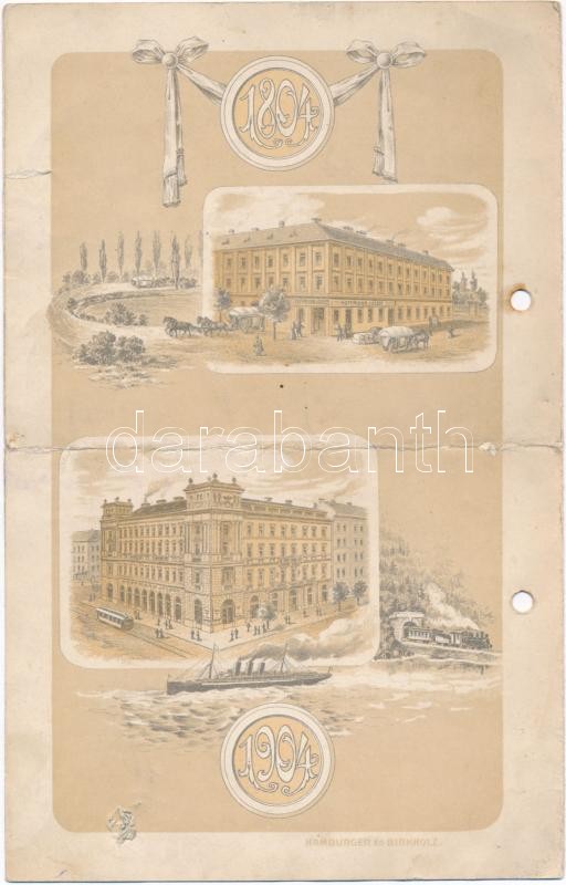 1904 Hoffmann József 1804-1904 szállítmányozó vállalat jubileumi brossújára, Hamburger és Birkholz, szakadásokkal, középen hajtás nyommal, 23x15 cm.