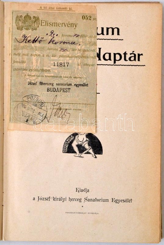 1907 Sanatorium Naptár. Budapest, 1907, József Királyi Herceg Sanatori... https://www.darabanth.com/en/275-Online-auction/275.0/Other-collectibles/Printed-Materials~200265/1907-Sanatorium-Naptar-Budapest-1907-Jozsef-Kiralyi-Herceg-Sanatorium-Egyesulet-Kiadoi-fest~II1403235