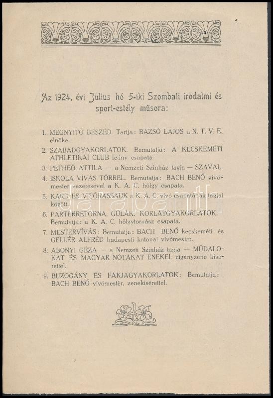 1924 A Nagykőrösi MOVE Torna és Vívó Egylet meghívója táncestélyre és ...