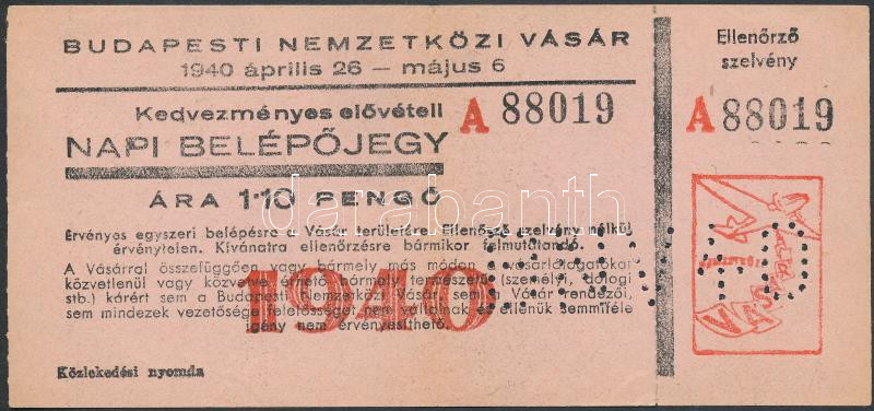 1940 A Budapesti Nemzetközi Vásár napi belépőjegye