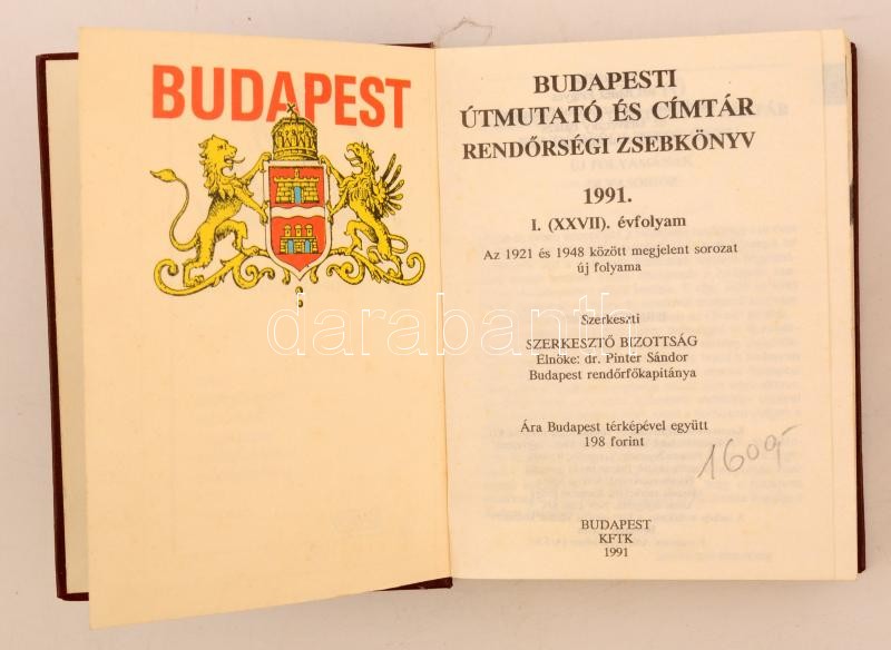 1991 Budapesti Útmutató és címtár I. évfolyam, rendőrségi zsebkönyv, 6...