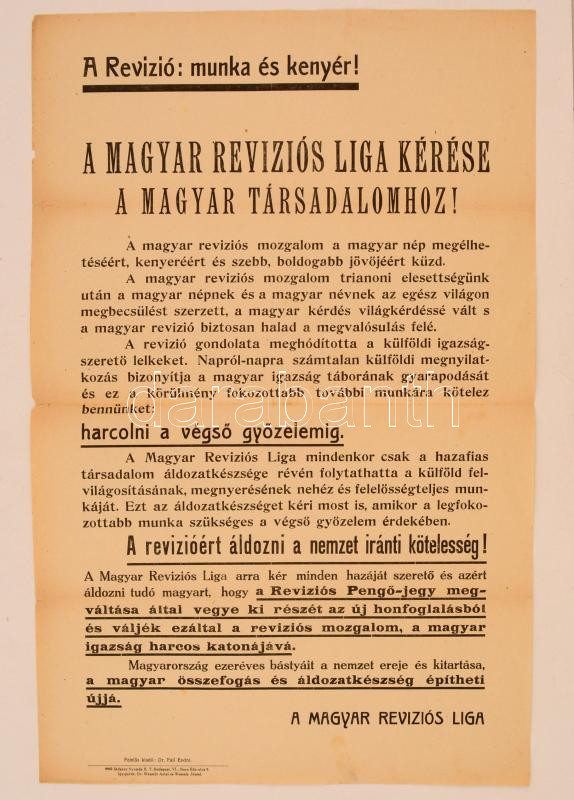 https://www.darabanth.com/en/275-Online-auction/275.0/Other-collectibles/Printed-Materials~200265/cca-1927-1928-A-Magyar-Revizios-Liga-nagymeretu-plakatja-irredenta-gondolatokkal-hajtott-46x3~II1407069
