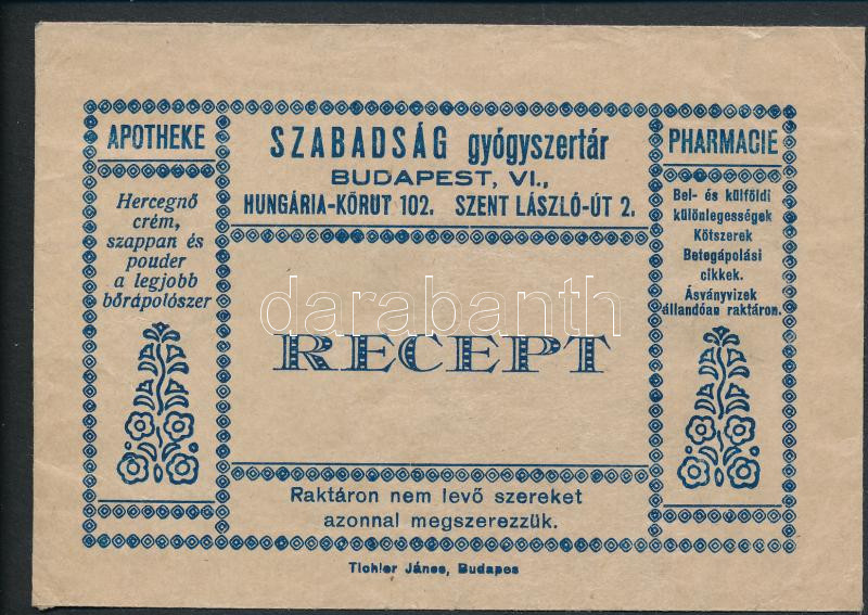 https://www.darabanth.com/en/275-Online-auction/275.0/Other-collectibles/Printed-Materials~200265/cca-1930-BpVI-A-Szabadsag-Gyogyszertar-receptboritekja~II1404849