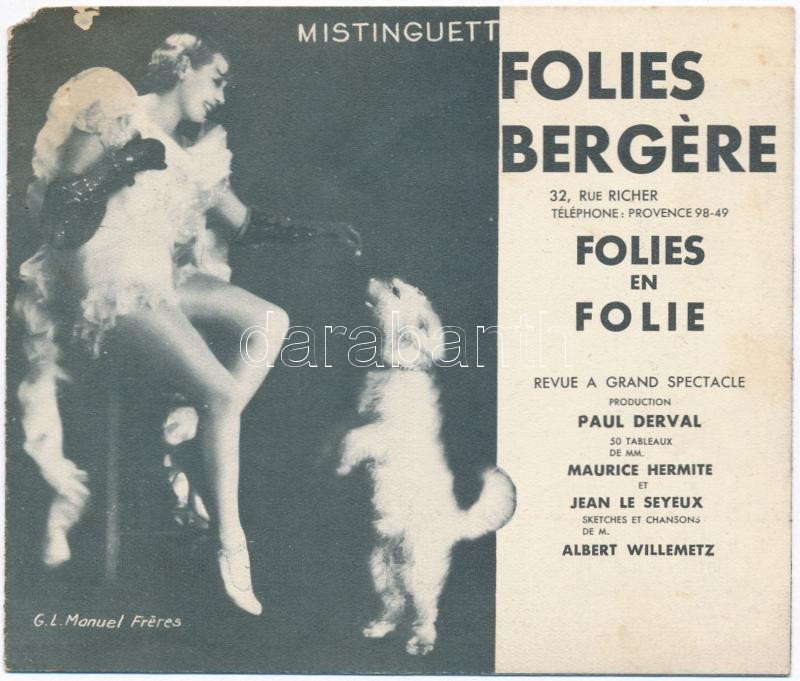 cca 1930 Folies Bergére francia párizsi varieté reklámja és műsorfüzet... https://www.darabanth.com/en/275-Online-auction/275.0/Other-collectibles/Printed-Materials~200265/cca-1930-Folies-Bergere-francia-parizsi-variete-reklamja-es-musorfuzete-sok-keppel-kis-se~II1408134
