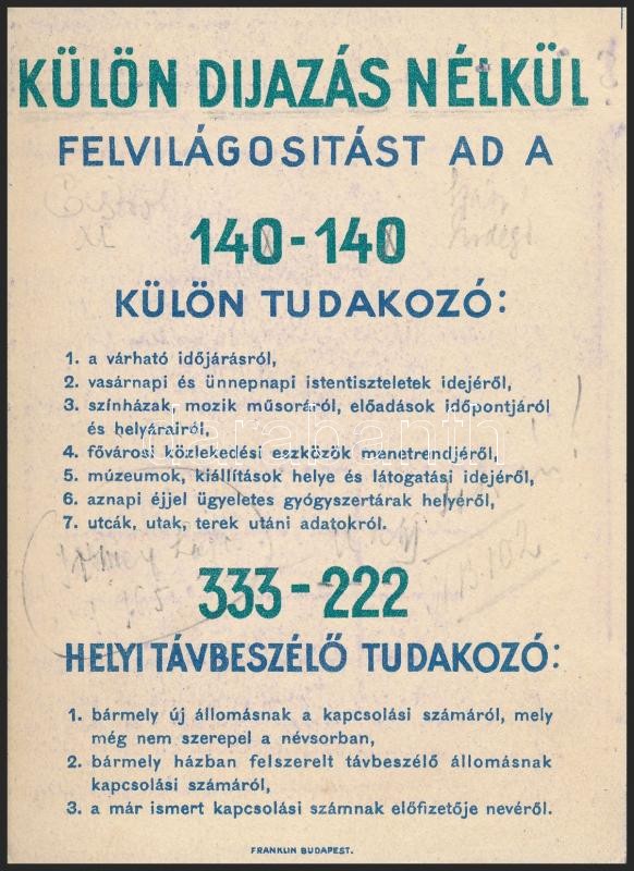 cca 1930 "Mit jelent ez a két szám?" - a tudakozó reklámos szórólapja, grafitceruzás firkák nyomával, 13x9 cm