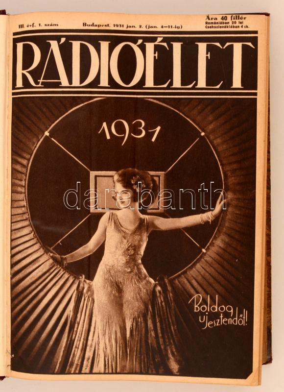 cca 1931 Rádióélet I. III. évfolyam, fél évfolyam, 1-26 szám. Átkötött... https://www.darabanth.com/en/275-Online-auction/275.0/Other-collectibles/Printed-Materials~200265/cca-1931-Radioelet-I-III-evfolyam-fel-evfolyam-1-26-szam-Atkotott-kopottas-serult-~II1406907