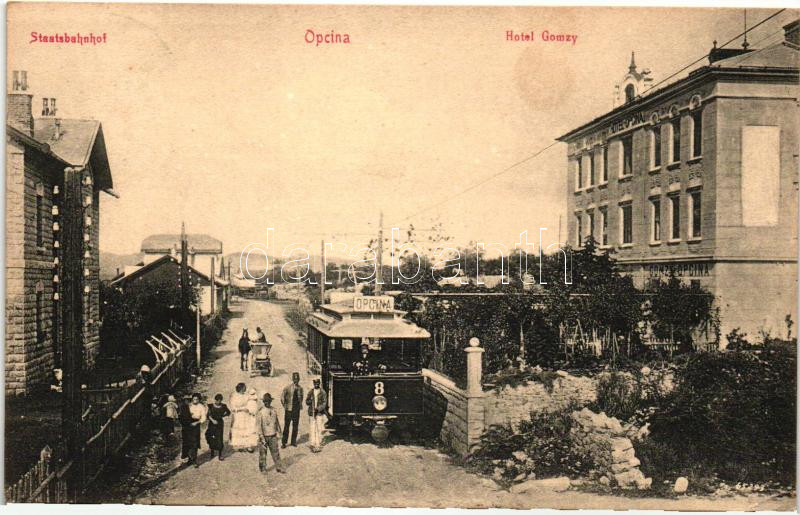 Opicina, Opcina; vasútállomás, Gozmy szálloda, villamos, katonai cenzú...