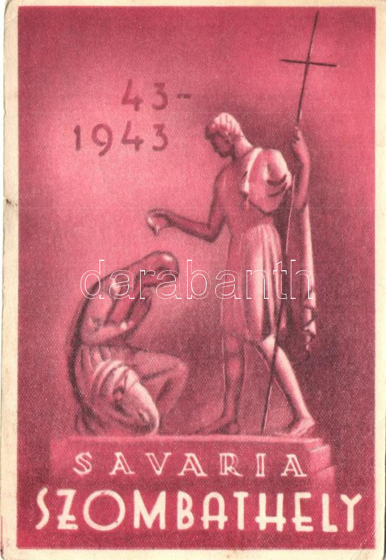 1943 Szombathely, Rajki István szobra, Szent Márton Savaria-ban megkereszteli édesanyját; emlék Szombathely 1900 éves városi múltjából So.Stpl (EK)