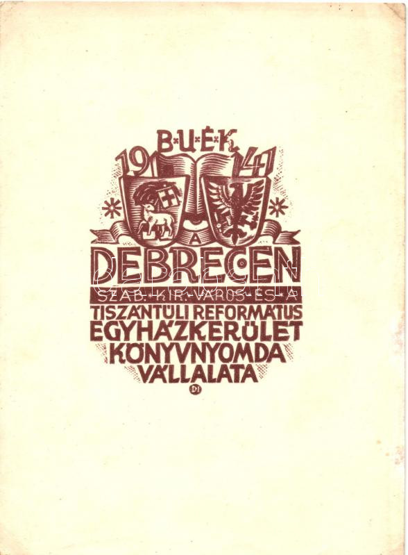 'BUÉK 1941' Debrecen szabad királyi város és a tiszántúli református e... https://www.darabanth.com/en/275-Online-auction/275.0/Postcards/Hungary~400010/BUEK-1941-Debrecen-szabad-kiralyi-varos-es-a-tiszantuli-reformatus-egyhazkerulet-konyvny~II1404566