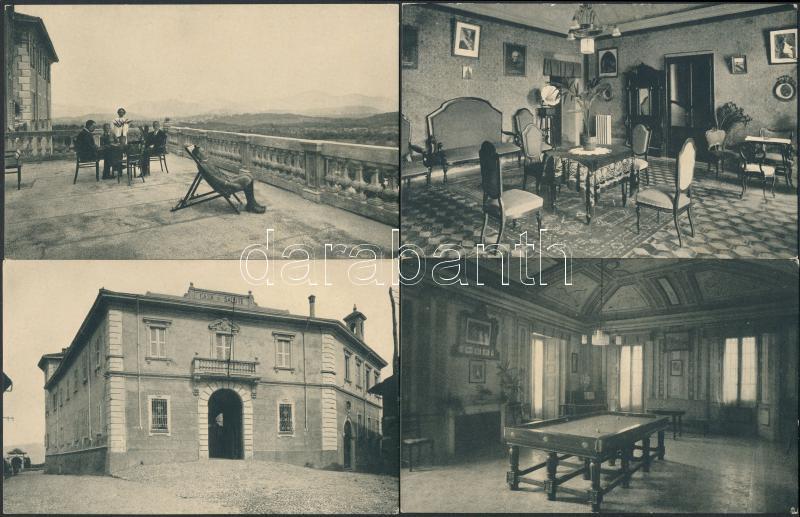 Solbiate, Casa di Salute Fate Bene Fratelli / sanatorium, interior, terrace - 4 unused pre-1945 postcards, good quality