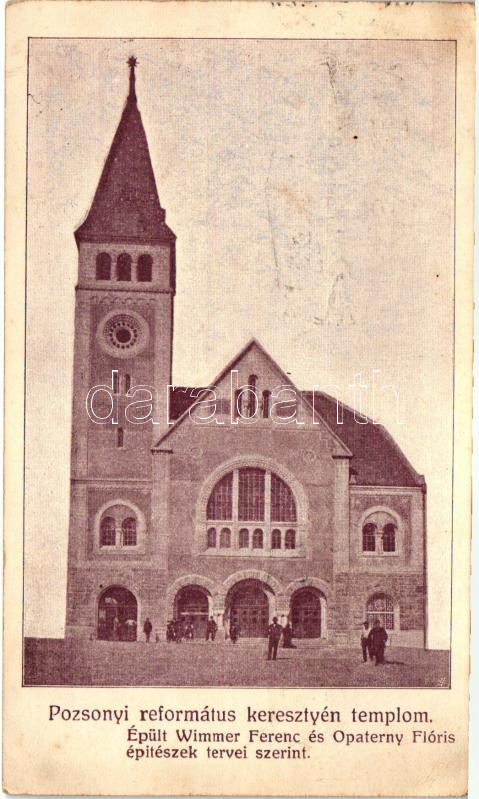 Pozsony, Bratislava; Református templom, épült Wimmer Ferenc és Opater... https://www.darabanth.com/en/275-Online-auction/275.0/Postcards/Slovakia~400013/Pozsony-Bratislava-Reformatus-templom-epult-Wimmer-Ferenc-es-Opaterny-Floris-tervei-alapjan~II1407650