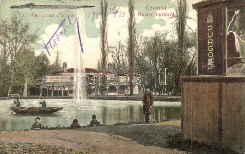 Buziás-fürdő, Szent Antal csodakút a tóval, Purgo reklám, kiadja Nosek...