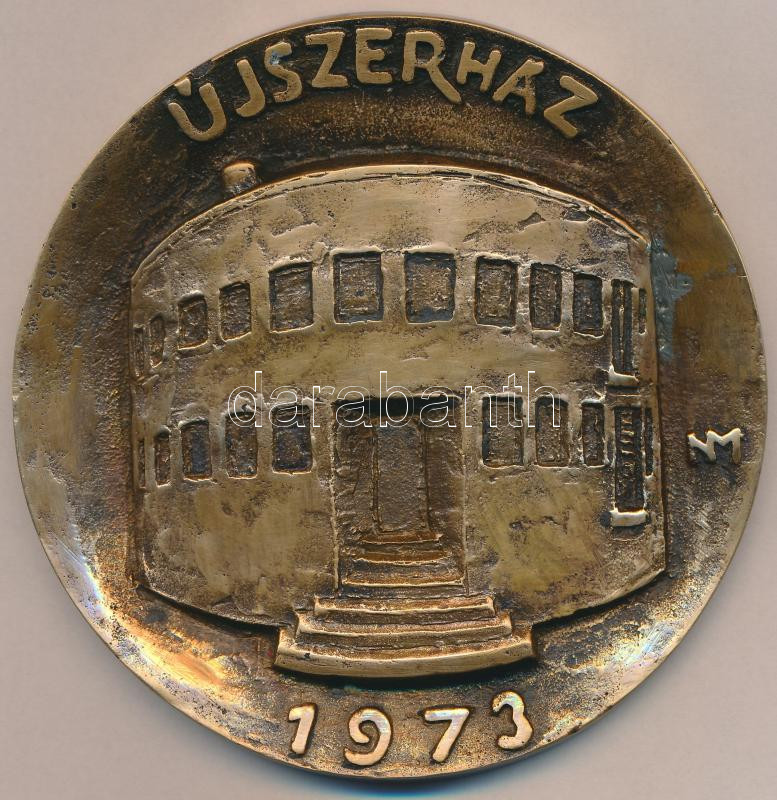 1973. "Újszerház" Bronzozott fém lemezplakett. Szign.: NM (107mm) T:2