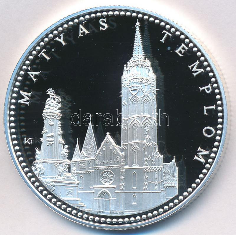 Kósa István (1953-) DN "Budapest nevezetességei - Mátyás Mátyás-templom" Ag emlékérem dísztokban tanúsítvánnyal (31,29g/0.999/42,5mm) T:PP