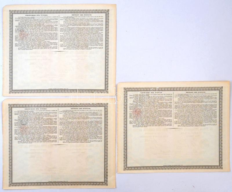 Orosz Birodalom / Szentpétervár 1895. "Société Métallurgique Russo-Belge" részvénye 250R-ről (3x), sorszámkövetők, bélyegzéssel T:I-,II