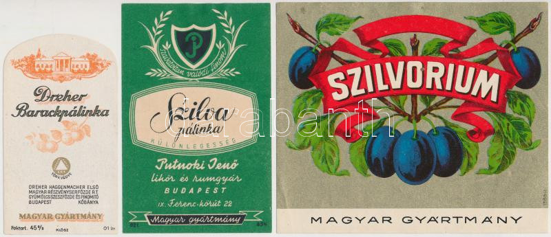 3 db italcímke(Putnoki Jenő Szilvapálinka, Szilvorium, Dreher Barackpá...