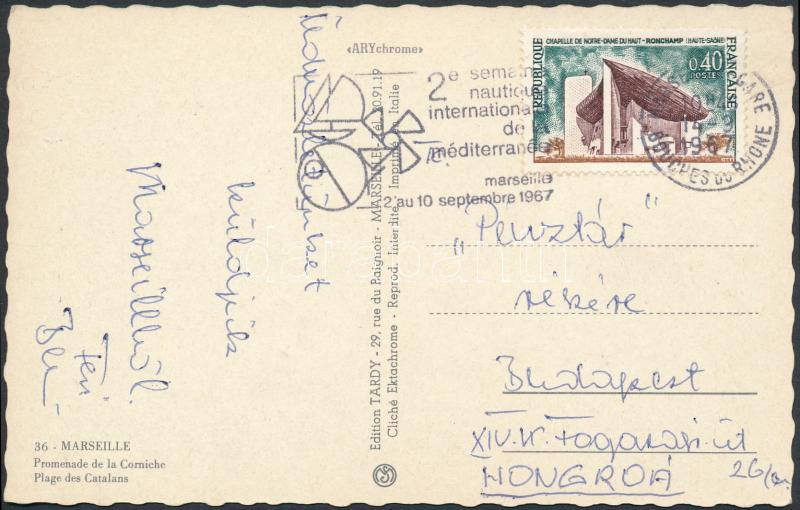 Bene Ferenc (1944-2006) és Káposzta Benő (1942- ) labdarúgók aláírásai Marseille-ből küldött levelezőlapon