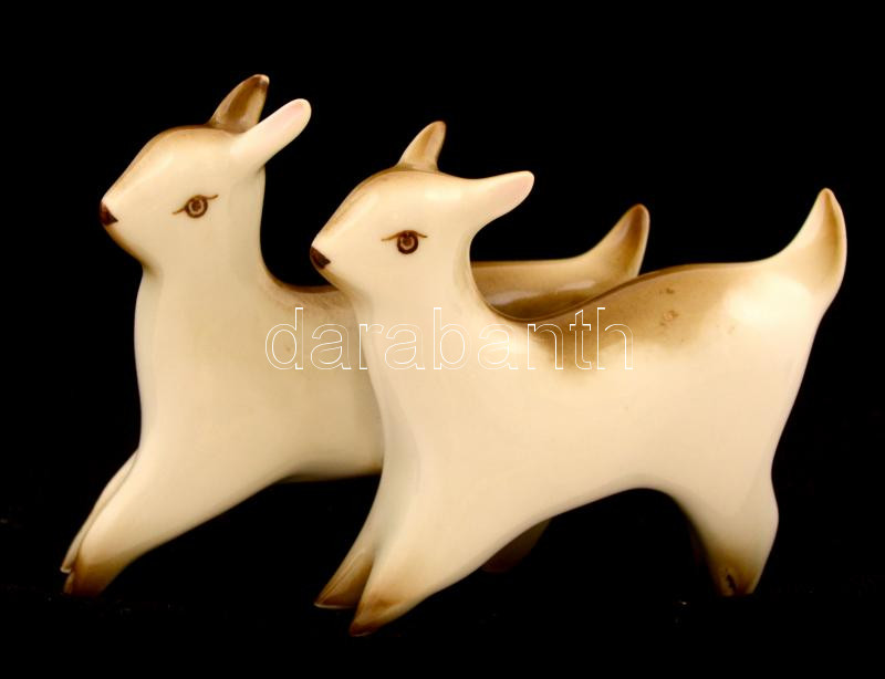 Zsolnay őzgida pár, kézzel festett, jelzett, hibátlan, m: 6,5 cm