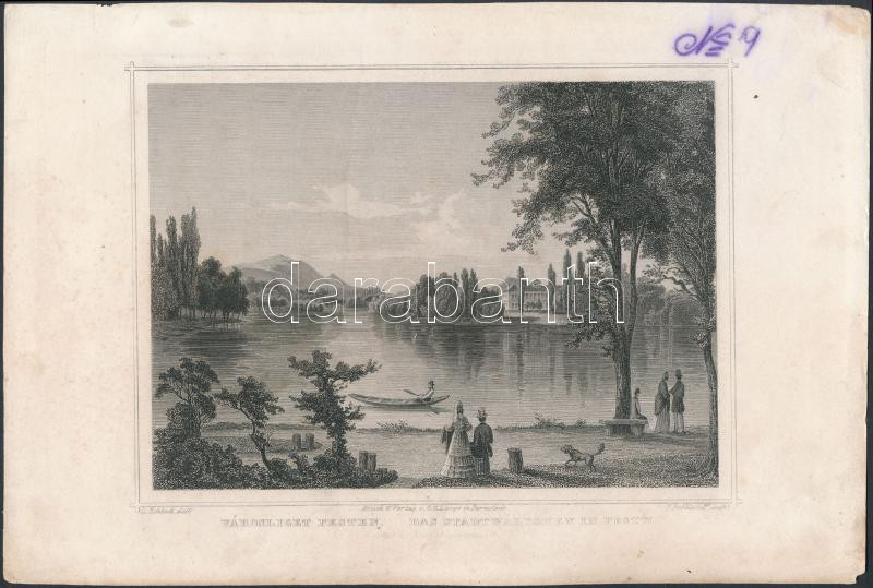 cca 1840 Ludwig Rohbock (1820-1883): Pest, Városliget acélmetszet / st...