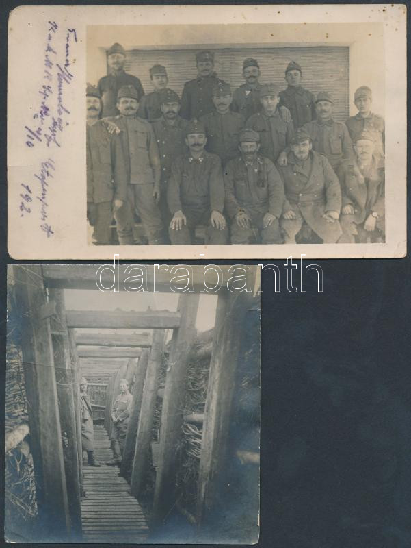 cca 1914-1918 2 db I. világháborús fotó: lövészárok, katonák csoportké...