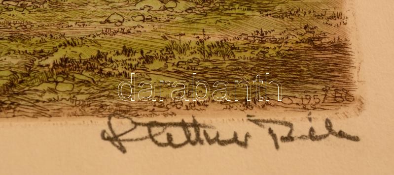 Stettner Béla (1928-1984): Itató. Színezett rézkarc, papír, jelzett, 1...