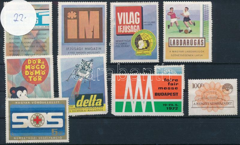 10 db, főként irodalmi magazinokkal foglalkozó levélzáró(IM, Világ Ifjúsága, Dörmögő Dömötör, stb.)