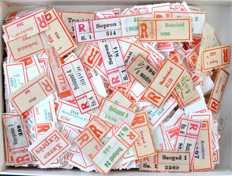Több mint 1000 db vegyes ajánlási ragjegy dobozban