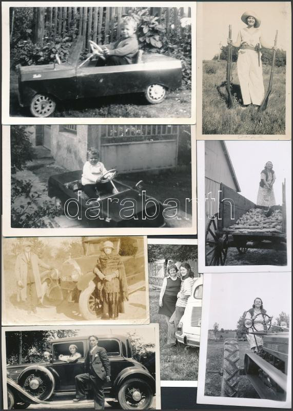 cca 1930-1960 17 db vegyes témájú fotó, közte autós, kiasutós, kukoric...