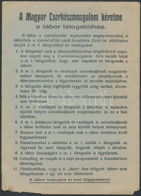 https://www.darabanth.com/en/276-Online-auction/276.0/Other-collectibles/Scout~200024/cca-1930-Cserkeszmozgalom-tabori-szabalyzat-16x22-cm~II1414620