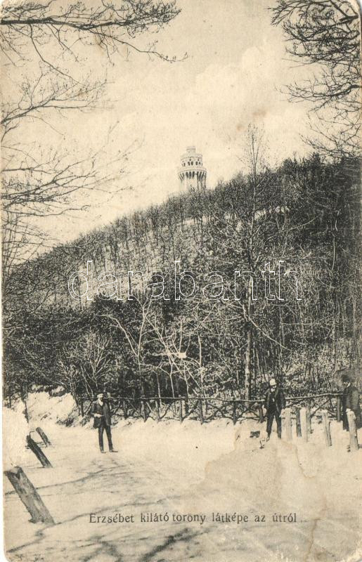 Budapest XII. János-hegy, Az Erzsébet kilátótorony az útról, télen (EK...