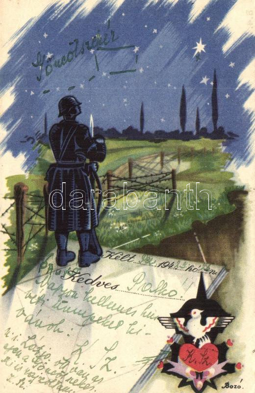 II. világháborús katonai üdvözlőlap / WWII Hungarian military greeting card s: Bozó (tűnyomok / pinholes)