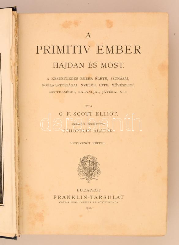 G. F. Scott Elliot: A primitív ember hajdan és most. Fordította Schöpf... https://www.darabanth.com/en/277-Online-auction/277.0/Books/Books-History~33/G-F-Scott-Elliot-A-primitiv-ember-hajdan-es-most-Forditotta-Schopflin-Aladar-Budapest-191~II1422033