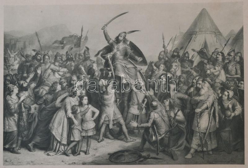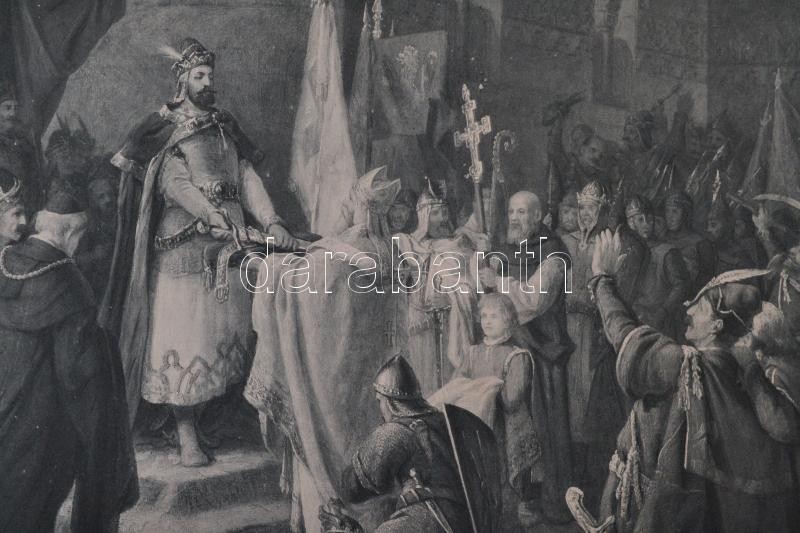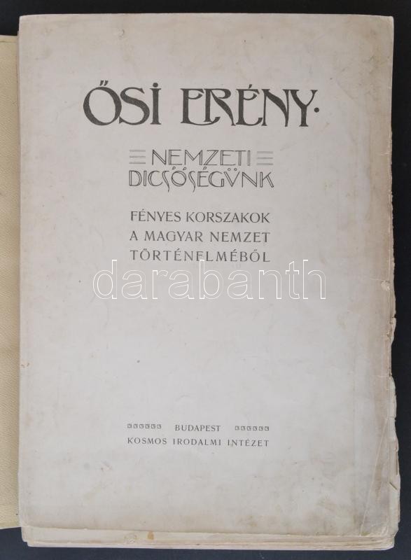 Ősi Erény. Fényes korszakok a magyar nemzet történelméből. Than Mór, Munkácsy Mihály, Lotz Károly, Benczúr Gyula, Székely Bertalan, Zichy Mihály, és más híres magyar művészek festményeinek fénymetszetű reprodukciói, 50 db. Budapest, é.n., Kosmos Irodalmi Intézet. Kiadói egészvászon kötésben. Rossz állapotban, Benczúr Gyula: Vajk megkeresztelése c. munka hiányzik.