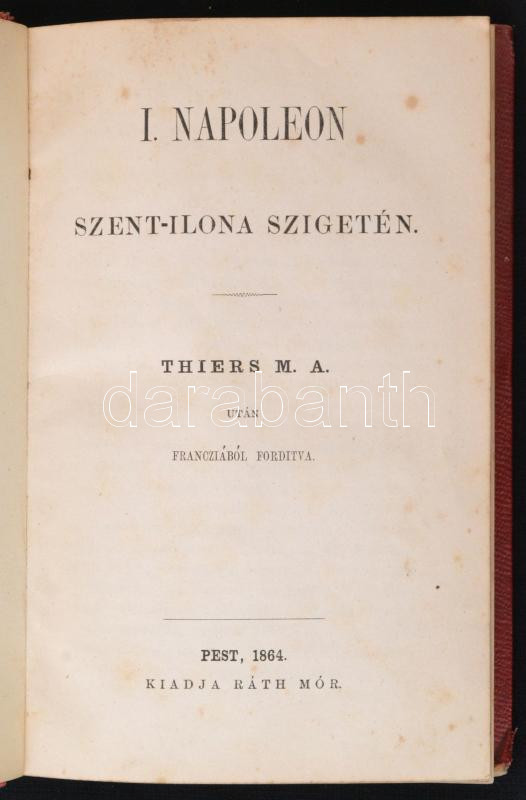 https://www.darabanth.com/en/277-Online-auction/277.0/Books/Books-History~33/Thiers-M-A-I-Napoleon-Szent-Ilona-szigeten-Pest-1864-Rath-Mor-332-p-Kiadoi-picit-kopott~II1421699