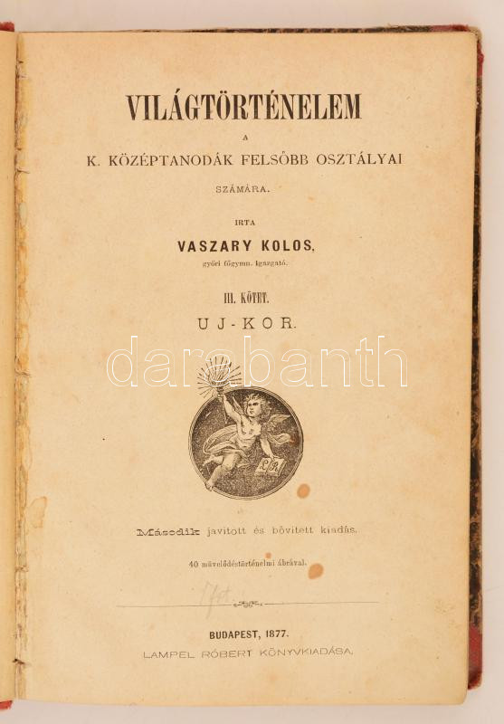 Vaszary Kolos: Világtörténelem. III. kötet Uj-kor. A k. középtanodák f... https://www.darabanth.com/en/277-Online-auction/277.0/Books/Books-History~33/Vaszary-Kolos-Vilagtortenelem-III-kotet-Uj-kor-A-k-kozeptanodak-felsobb-osztalyai-sza~II1406394