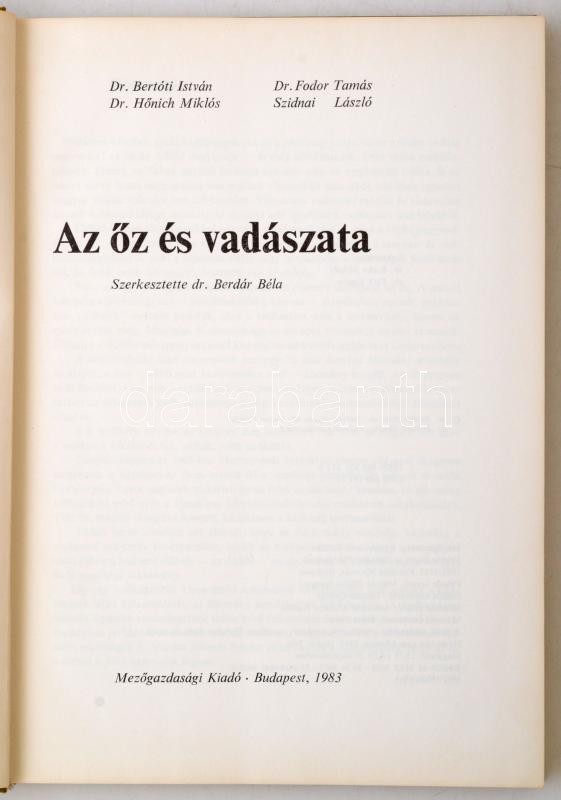 Berdár Béla dr.(szerk.): Az őz és vadászata. Bp., 1983, Mezőgazdasági ...