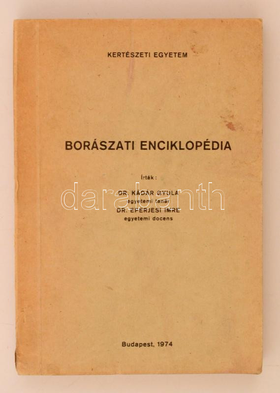 Dr. Kádár Gyula-Dr. Eperjesi Imre: Borászati enciklopédia. Budapest, 1974, Kertészeti Egyetem, 346 p. Kiadói papírkötésben, számos szövegközti illusztrációval. Kiadták 540 példányban.