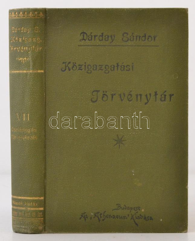 Dárday Sándor: Közigazgatási törvénytár. A fennálló törvények, rendele... https://www.darabanth.com/en/277-Online-auction/277.0/Books/Books-Law~32/Darday-Sandor-Kozigazgatasi-torvenytar-A-fennallo-torvenyek-rendeletek-es-dontvenye~II1421520
