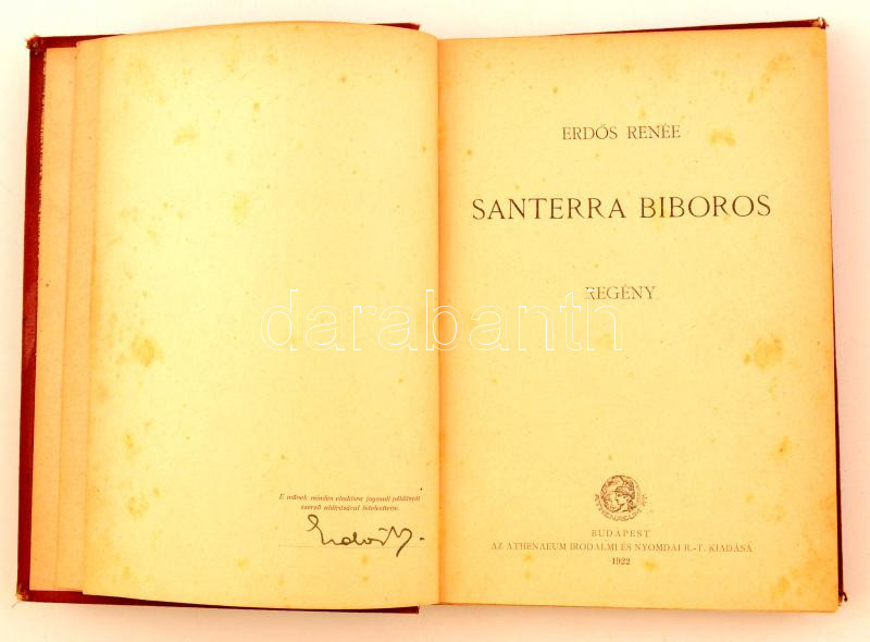Erdős Renée: Santerra Biboros. Budapest, 1922, Athenaeum Irodalmi és N... https://www.darabanth.com/en/277-Online-auction/277.0/Books/Books-Other-rarities~45/Erdos-Renee-Santerra-Biboros-Budapest-1922-Athenaeum-Irodalmi-es-Nyomdai-Rt-Kiadoi-kopottas~II1421656