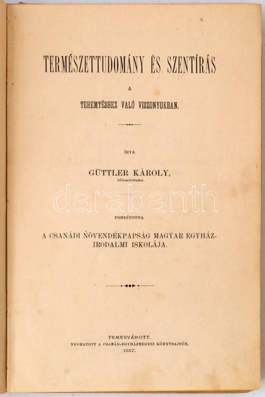 Güttler Károly: Természettudomány és szentírás a teremtéshez való visz... https://www.darabanth.com/en/277-Online-auction/277.0/Books/Books-Religion~41/Guttler-Karoly-Termeszettudomany-es-szentiras-a-teremteshez-valo-viszonyunkban-Forditott~II1392706