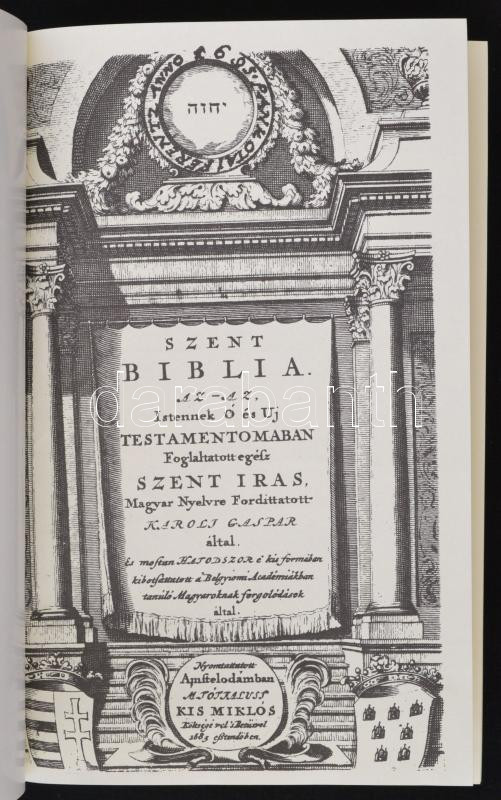 Misztótfalusi Kis Miklós Aranyas Bibliája. Szent Biblia - Azaz Istennek Ó és Újtestamentomában foglaltatott egész Szent Írás, fordította Károli Gáspár, 1685, M. Tótfalusi Kis Miklós. Szent David kiralynak és profetának szazötven soltári, fordította Szenci Molnár Albert, 1686, M. Tótfalusi Kis Miklós. Az 1685-ös és 1686-os kiadások hasonmás kiadása. Tarnóc Márton, Haiman György: M. Tótfalusi Kis Miklós aranyas bibliája. Budapest, 1991, Európa Kiadói bőrkötésben, aranyozott lapélekkel, kiadói papírdobozban, benne a tanulmányfüzettel, kiváló állapotban.