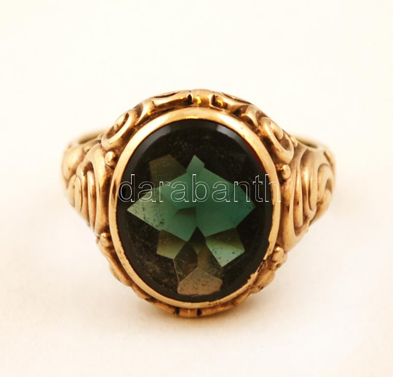 Arany (Au.) 9K gyűrű turmalin berakással, jelzett, saját díszdobozában...