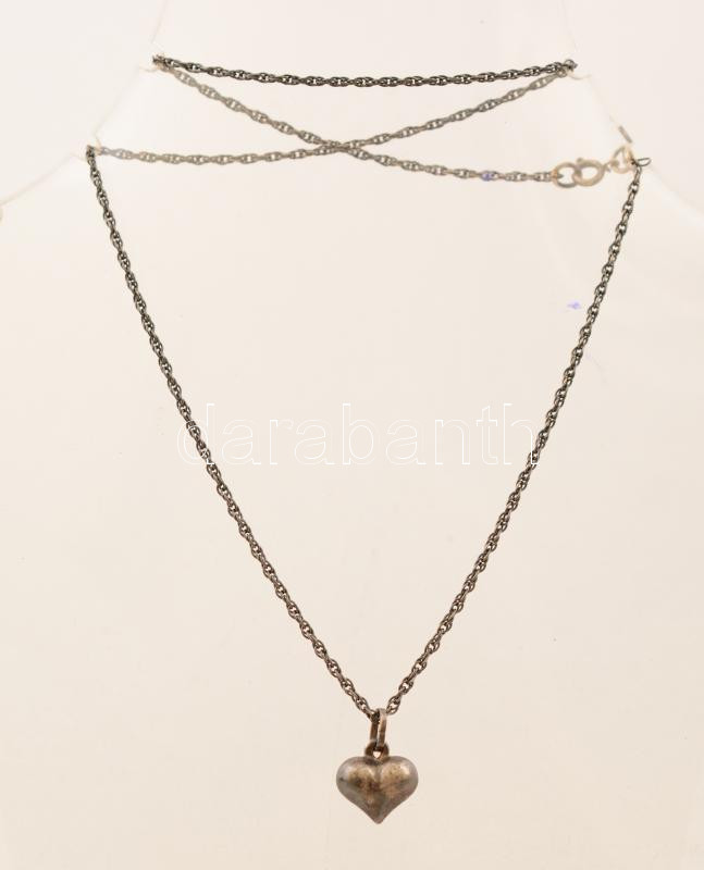 Ezüst (Ag.) nyaklánc szív medállal, jelzett, h: 49 cm, nettó 6,2 g