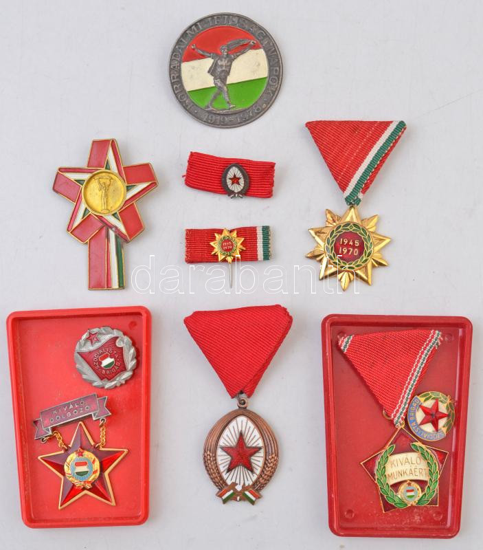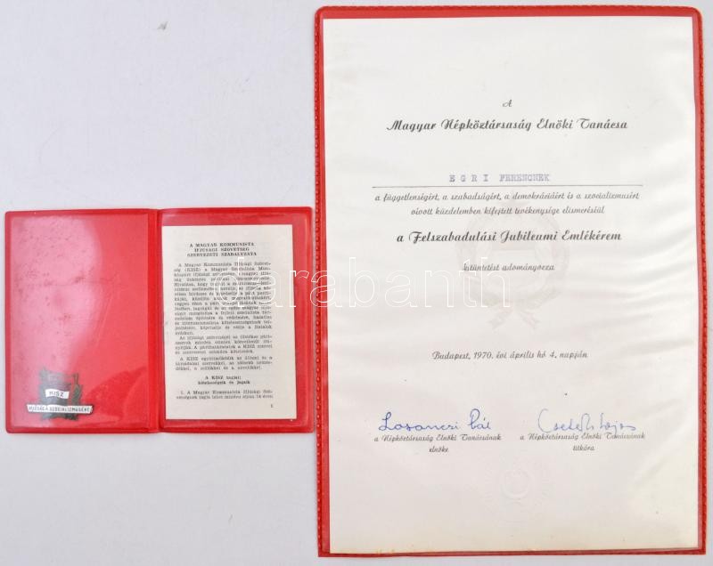 13db-os vegyes jelvény és kitüntetés tétel, közte 1970. "Felszabadulási Jubileumi Emlékérem" miniatűrrel, adományozói okirattal, 1985. "Munka Érdemrend" bronz fokozat, miniatűrrel T:2,2-