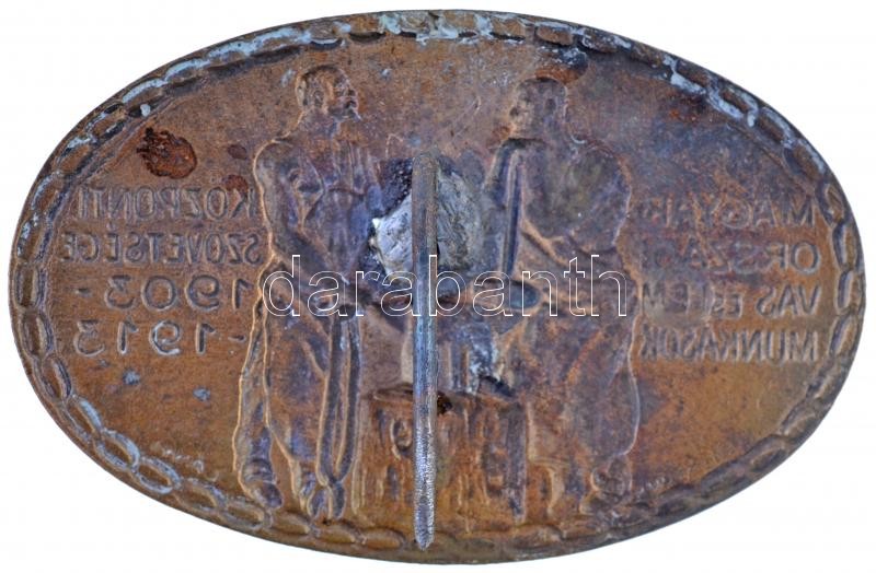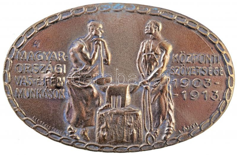 Lányi Dezső (1879-1951) / Klett és Szeiler (vésnöküzem) 1913. "Magyarországi Vas- és Fémmunkások Központi Szövetsége 1903-1913" bronz ovális jelvény (37x57mm) T:2 Hungary 1913. "Cantral Assicoation of Hungarian Iron and Metal Workers 1903-1913" bronze oval badge. Sign.: LÁNYI, KLETT ÉS SZEILER (37x57mm) C:XF