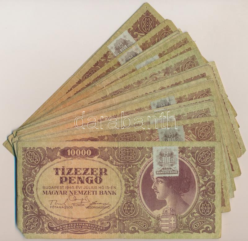 https://www.darabanth.com/en/277-Online-auction/277.0/Numismatics/Hungarian-Banknotes~400007/1945-10000P-30x-tobbsege-MNB-belyeggel-TIII-III-~II1422790