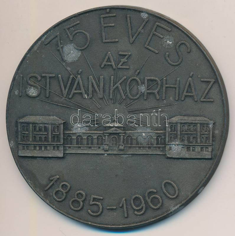 https://www.darabanth.com/en/277-Online-auction/277.0/Numismatics/Hungarian-commemorative-medals-and-plaques~400020/1960-75-eves-az-Istvan-Korhaz--1885-1960-ketoldalas-Zn-plakett-60-5mm-T2-oxidacio~II1417891